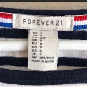 3/4 length sleeves with blue and white stripes. Higher sides, So fun and cute, especially paired with white jeans and sandals!! EUC.
