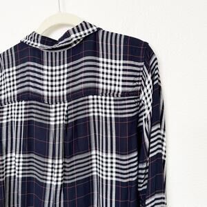 Forever 21+ Size 1X Navy Blue White Plaid Flannel Button Down Shirt Relaxed Fit