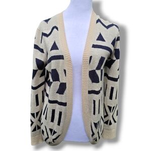 Forever 21 Navy Blue and Tan Geometric Cardigan Sweater