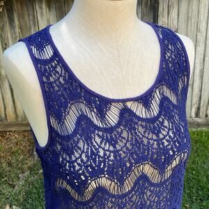 Forever 21 Navy Crochet See Through Tank Top Women's size Small