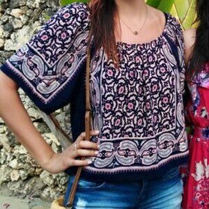 Forever 21 floral paisley crop top featuring oversized sleeves and a comfortable loose, flowing fit.