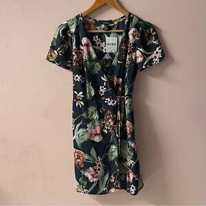 Forever 21 Navy Tropical Floral Wrap Mini Dress Size M NWT