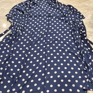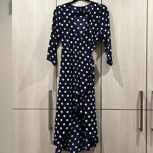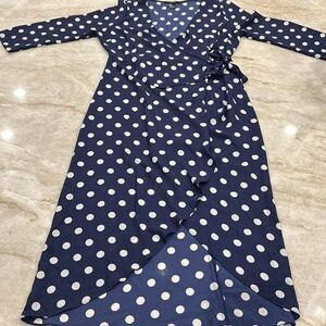 Forever 21 Navy White Polka Dot Wrap Dress Tulip Hem 3/4 Sleeve Size Large