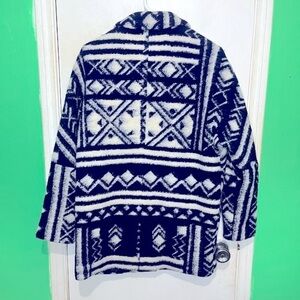 Forever 21 Navy White Wool Blend Blazer Jacket. Two buttons. Pockets. Oversized. Medium. Southwestern. Tribal. Aztec. Gently used.