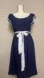 Chic navy lovely dress with white trim and tie belt. Perfect for versatile styling.