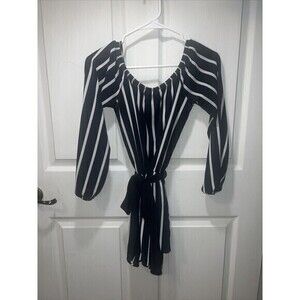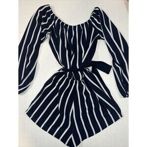 Forever 21 Navy and White Striped Off The Shoulder Long Sleeve Romper Size Small