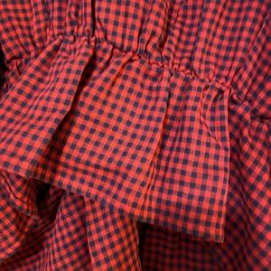 Forever 21 Navy/Red Gingham Flounce Shirt