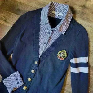 Forever 21 Navy/White Sweater Dress Top Size Small