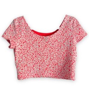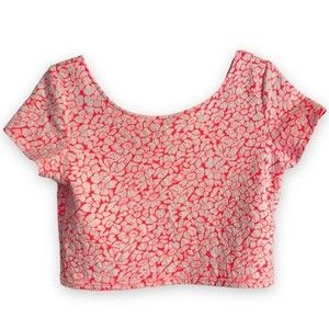 Stretchy fitted crop top neon orange / pink color with white flowers