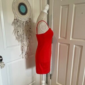 Forever 21 Neon Red-Orange Bodycon Cami Slip Mini Dress with Adjustable Straps