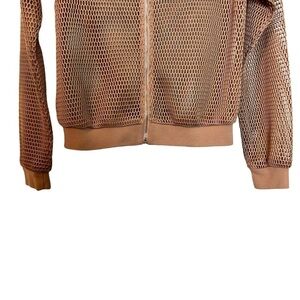 Forever 21 Netted Cropped Tan Front Zip Bomber Jacket Coverup Sz.S