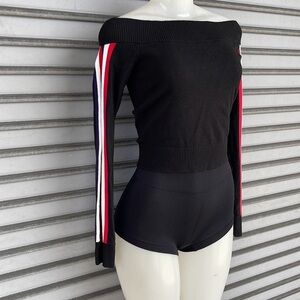 Forever 21 Off Shoulder Black Long Sleeve Red White Purple Strip Size M