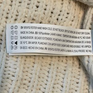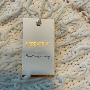 Forever 21 Shaggy Loop Knit Sweater in Cream Chenille Super Soft fabrication. It features Long Sleeves, a Boat Neck, Long Sleeves, a Back Keyhole with Double Tie Closure, it has Ribbed Knit Cuffs, Collar and Hem, and is a Pull-Over style.