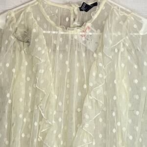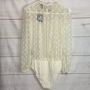 Forever 21 Off White Sheer Long Sleeve Bodysuit Size Small