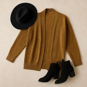 Features: Open front cardigan | Ribbed trim | Long sleeves | Relaxed fit | Textured chenille fabric