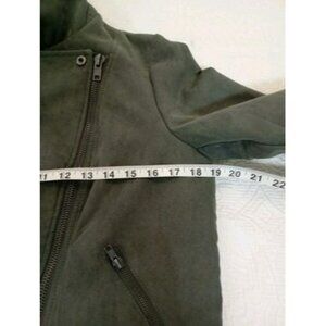 Forever 21 Olive Green Faux Suede Moto Jacket With Zipper Pockets & Belt Size L