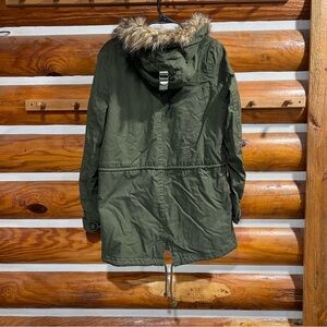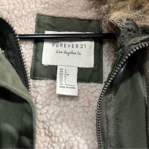 Forever 21 Olive Jacket with Faux Fur Trim