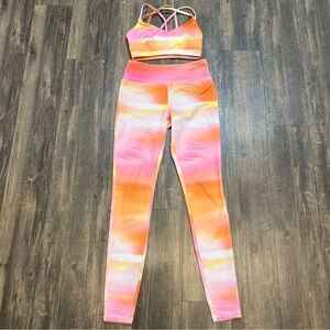 Beautiful and vibrant ombré orange pink matching set of a Racerback crisscross sports Size XS and high waist leggings size S (size tag has been cut off)