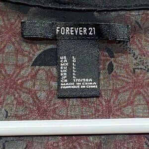 Forever 21 Open Front Kimono Top Women's Large Red Black Floral Lightweight GUC