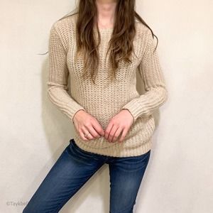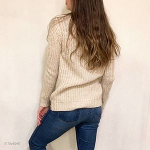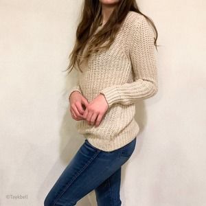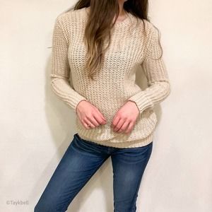 Forever 21 Open Knit Cream Crewneck Fall Sweater S