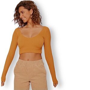 Forever 21 Golden Orange Long Sleeves Cropped Top