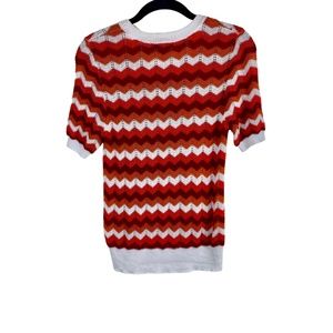 - Forever 21 orange multi zig zag crochet shirt with crewneck and banded hem. Lightweight and perfect for fall layering.