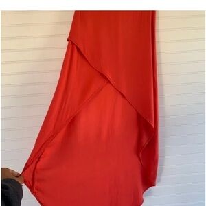 This stunning maxi skirt from Forever 21 features a vibrant orange-red hue and an elegant wrap style. Its asymmetrical design and flowing fabric make it perfect for a cocktail night out, adding a touch of sophistication to your ensemble.