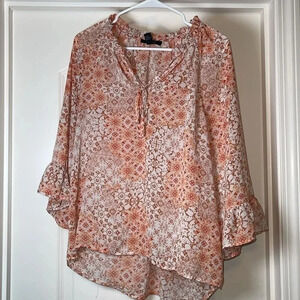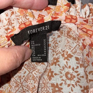 Forever 21 Orange Rust Brown Artsy 3/4 Sleeve Ruffle Drawstring Blouse - Size M