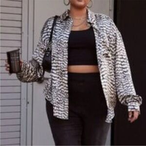 Forever 21+ Oversized Abstract Shirt Long Sleeve Silky Black Multi Color
