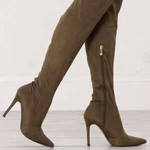Forever 21 Over-the-Knee Stiletto Platform Olive Brown Boots Size 8