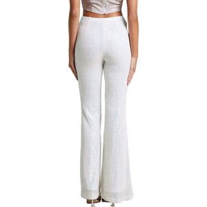 Forever 21 Pants Womens Large White Sequined Flare Disco Party Holiday 30x32