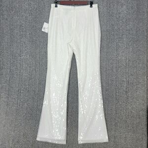 Forever 21 Pants Womens Large White Sequined Flare Disco Party Holiday 30x32.