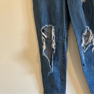 Forever 21 Paper Bag Elastic Waist Medium Wash Button Fly High Rise Mom Jeans