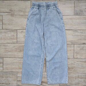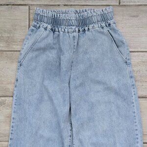 Forever 21 Paper Bag Wide Leg Jeans Women's Baggy Light Washed Ruched Waist S