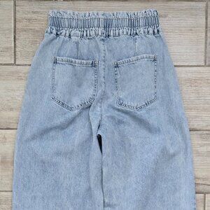 Forever 21 Paper Bag Wide Leg Jeans Women's Baggy Light Washed Ruched Waist.