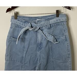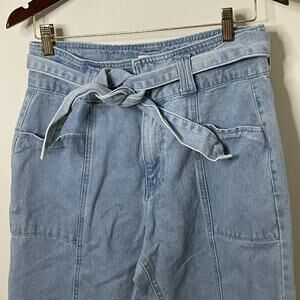 Forever 21 Paperbag Denim Jeans Light Blue High Rise Belted Hipster Women Sz 30