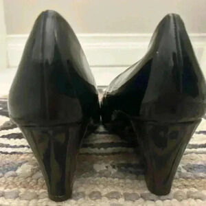 Never worn patent leather shiney wedge shoes. Rounded toe. Woman's size 10