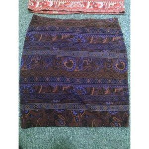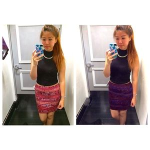 Two Forever 21 mini bodycon skirts bundle! can sell separately too. bohemian paisley type of pattern, one is red and the other is a dark purple color. never worn out, only to model. no flaws. I don't remember the original price and I couldn't find the skirt on the website so I made up the og price. both prices reflect both items, not separately. thanks for looking at my listing! :)