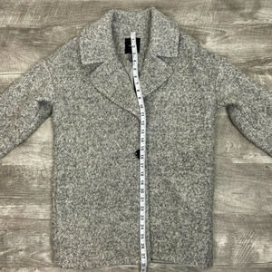Forever 21 Wool Blend Pea Coat Womens Size Small Gray and White with Single Button Closure. Pre-owned in excellent condition. Lined, front side pockets, and a marled boiled wool look. Modern take on a classic pea coat style.