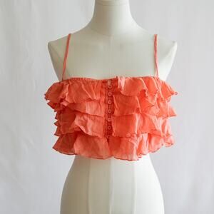 Forever 21 Peach Cotton Tiered Ruffle Cropped Cami size L