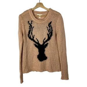 Forever 21 Peach Pink Reindeer Open Knit Crewneck Sweater M