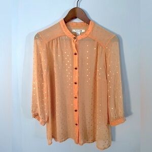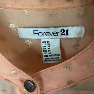 ☀️Forever 21 Peach and Gold Polkadot Blouse Size Medium