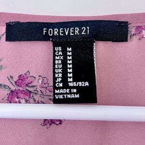 This pink blouse from Forever 21 features a relaxed, boxy fit with cap sleeves and a rounded neckline. The lightweight fabric drapes beautifully, making it an ideal choice for spring or summer wear. Its soft pink hue is complemented by a subtle butterfly print, adding a touch of whimsy to your wardrobe.