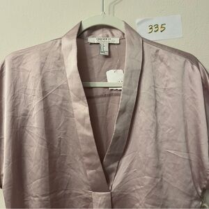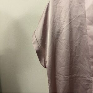 This relaxed pink blouse from Forever 21 features a chic mandarin collar and dolman sleeves, offering a comfortable yet stylish fit. The short sleeves and buttoned front add a touch of elegance, making it perfect for both casual and professional settings. Its soft fabric and relaxed style ensure a polished look with ease.