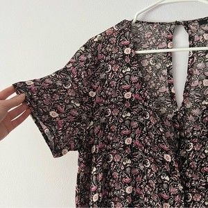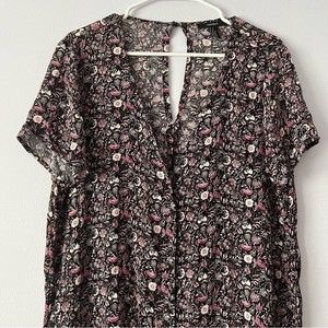 Forever 21 Pink Black Floral Button Down Dress Medium