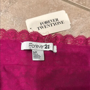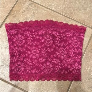 This Forever 21 bandeau showcases a beautiful floral lace design in a vibrant pink hue, providing a soft and flexible fit. The scalloped edges enhance its romantic appeal, making it an ideal choice for layering under diverse outfits.