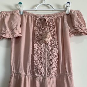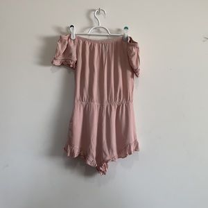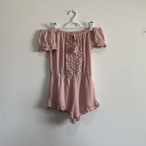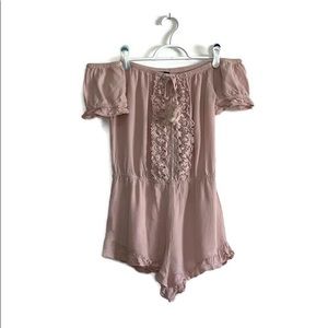 Forever 21 Pink Lace Ruffle Off the Shoulder Romper Size Small