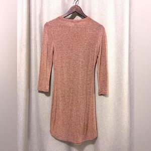 The Forever 21 Pink Long Sleeve Sheath Dress is a chic choice for cocktail events or a night out. Soft, stretchy knit fabric, crew neck and a sleek, fitted silhouette that flatters the figure. The dress's minimalist design and versatile pink hue make it a stylish addition to any wardrobe.