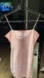 Chic pink mini dress with spaghetti straps. Features 'Barbie' logo on front.