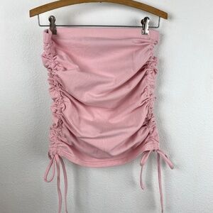 Forever 21 Pink Mini Knit Skirt Large Adjustable Gathered Sides Clubbing